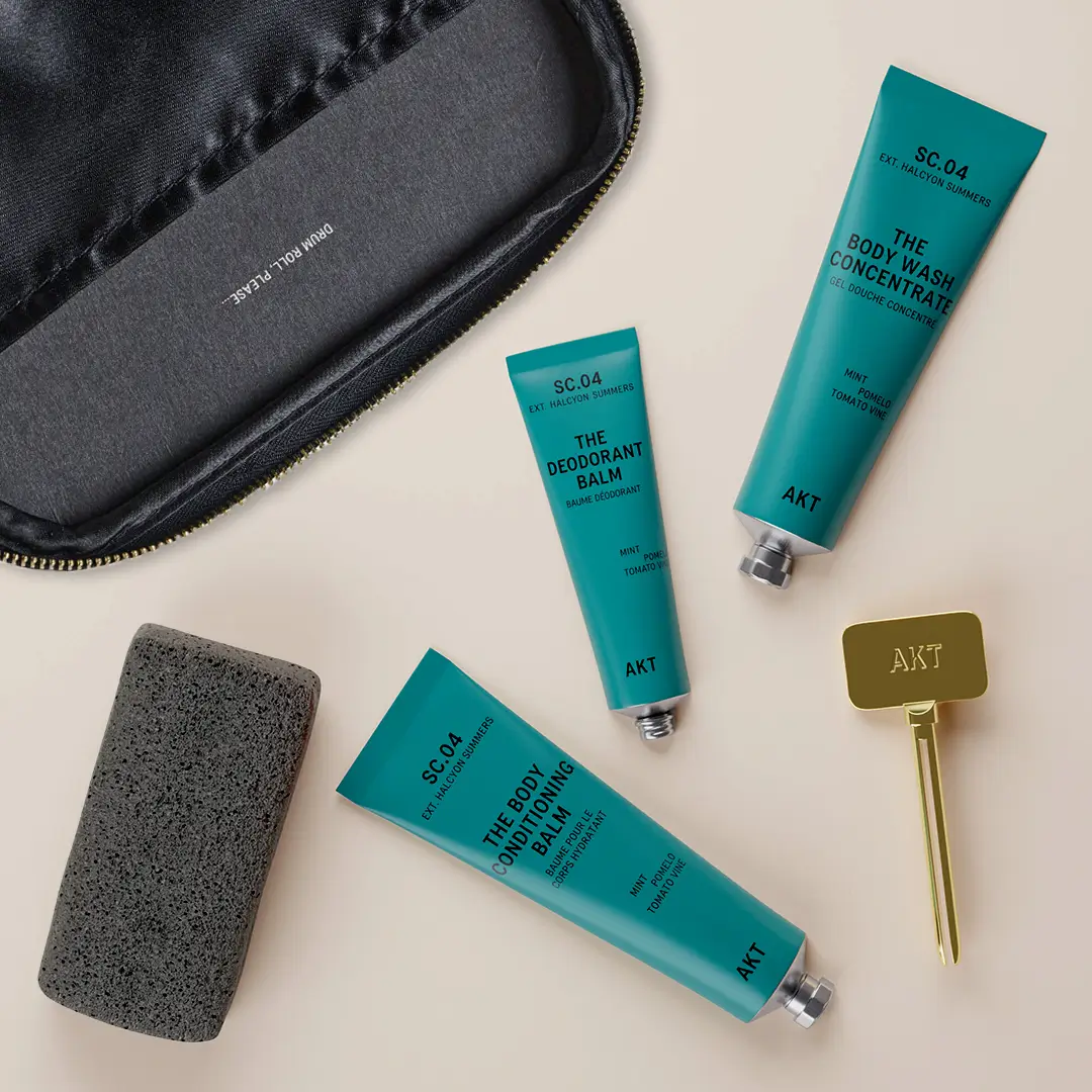 Featuring The Body Wash Concentrate, The Body Conditioning Balm and The Deodorant Balm, supported by The Konjac Sponge and The Assistant, and presented in a luxury travel wash bag — this scene-stealing body care routine is guaranteed to bring the house down!
